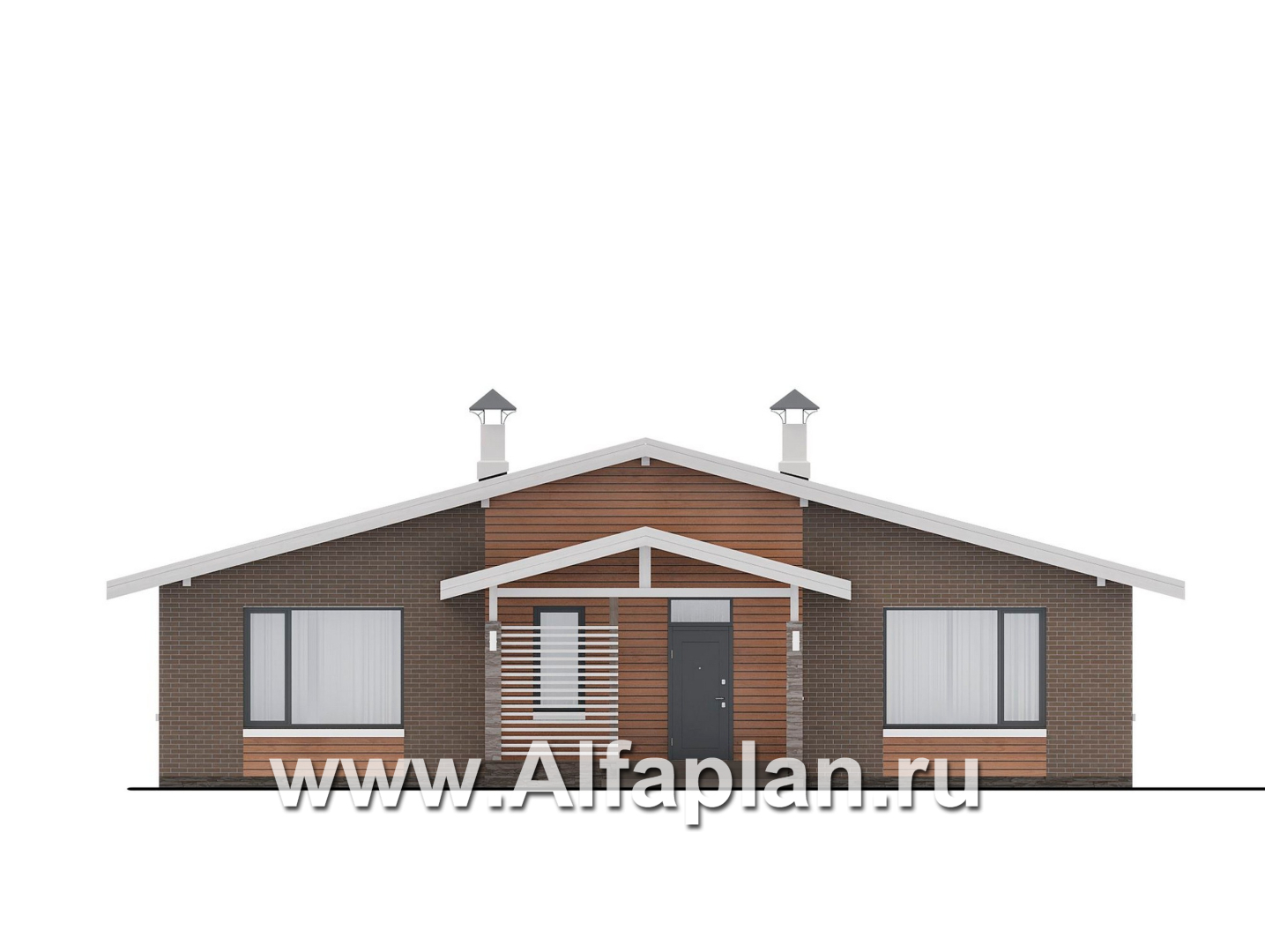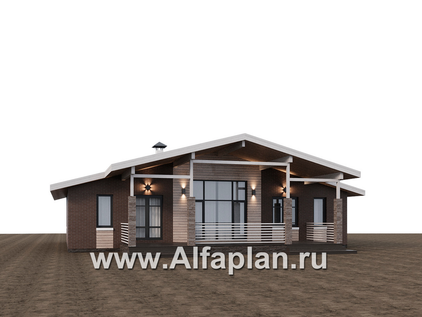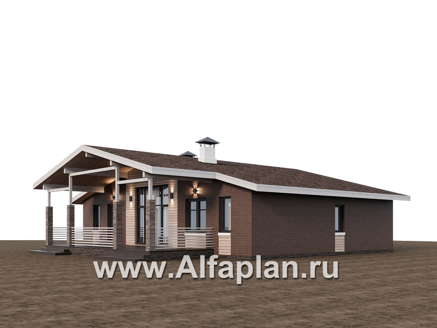 «Симплекс» - проект одноэтажного дома из газобетона, с террасой, с двускатной крышей