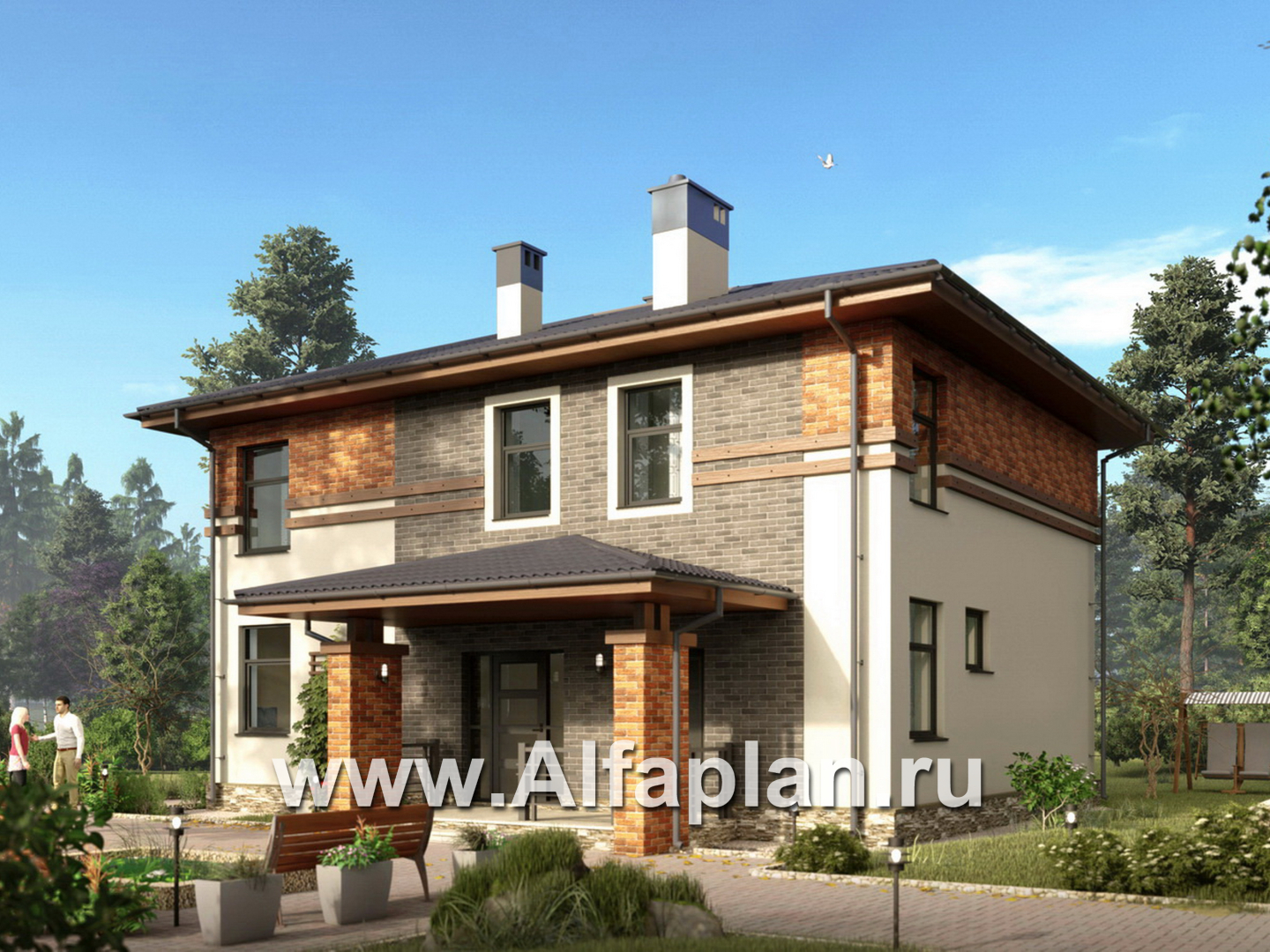 Проект двухэтажного дома, план со спальней на 1 эт, простой в строительстве, в современном стиле - технические характеристики