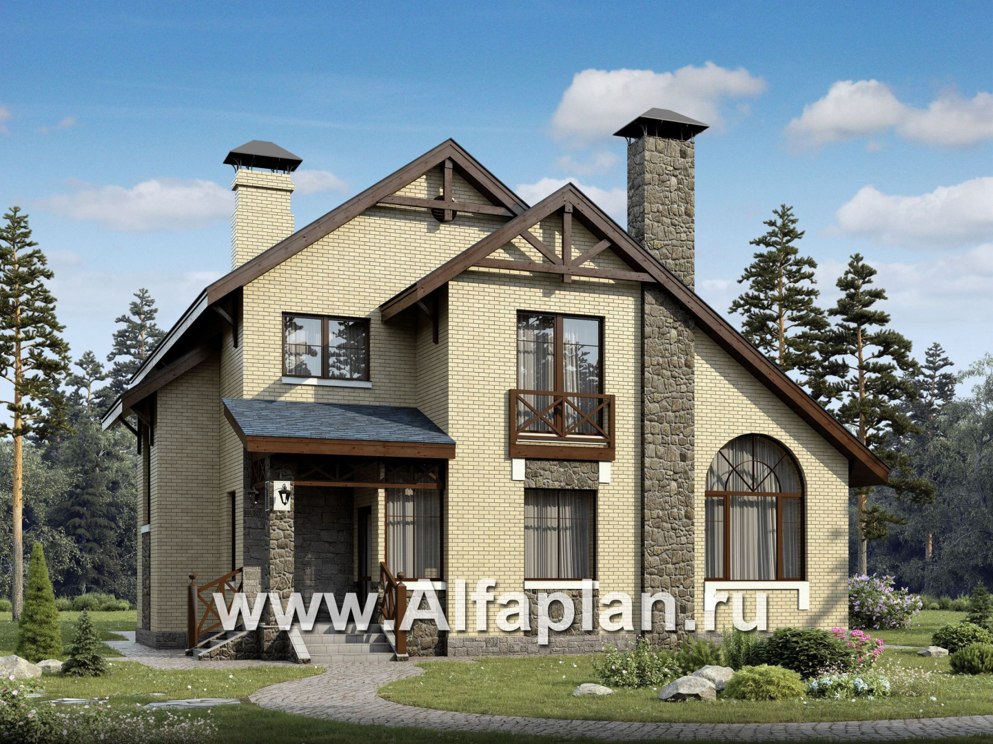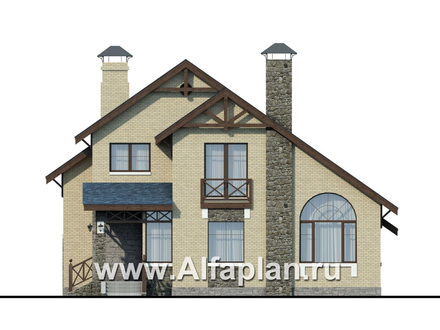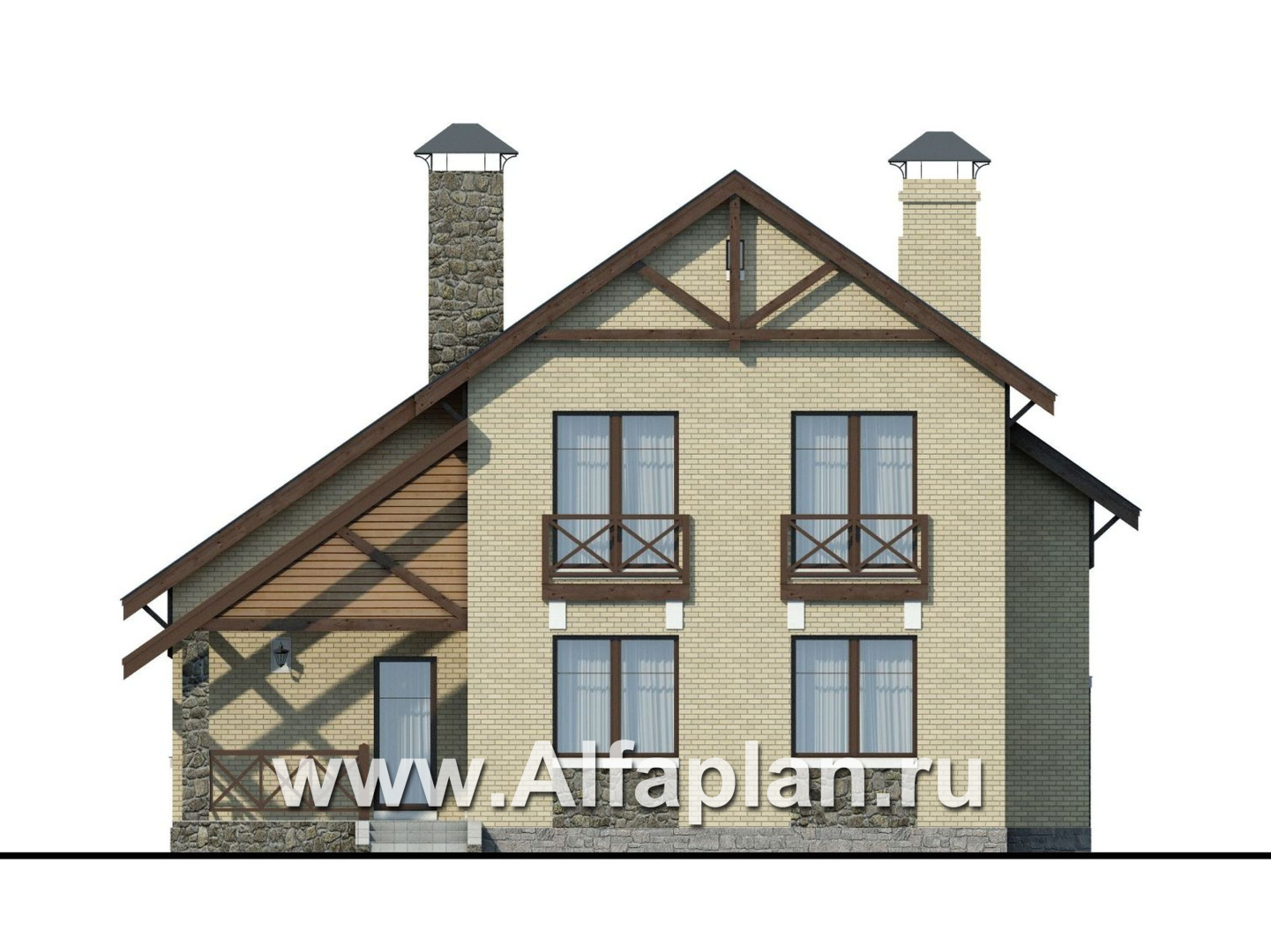 153A-S «Простор» - проект двухэтажного дома из кирпича, планировка с высокой гостиной, труба на фасаде в американском стиле