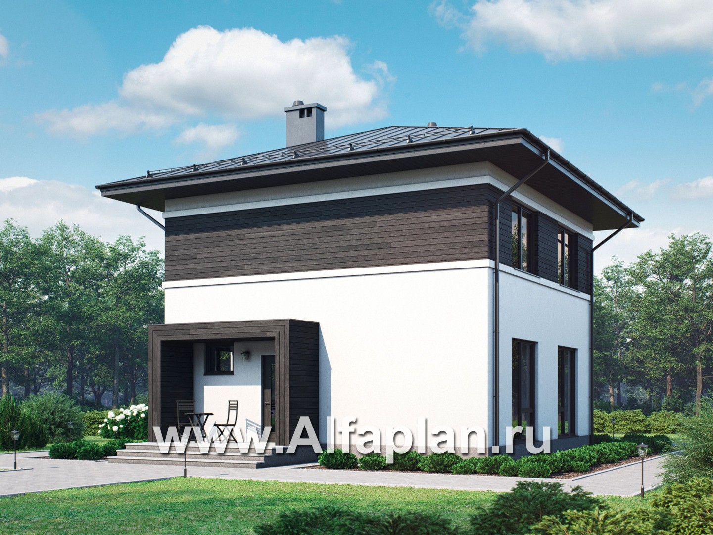 G163 Проект двухэтажного дома из газобетона, планировка с кабинетом на 1 эт, в современном стиле